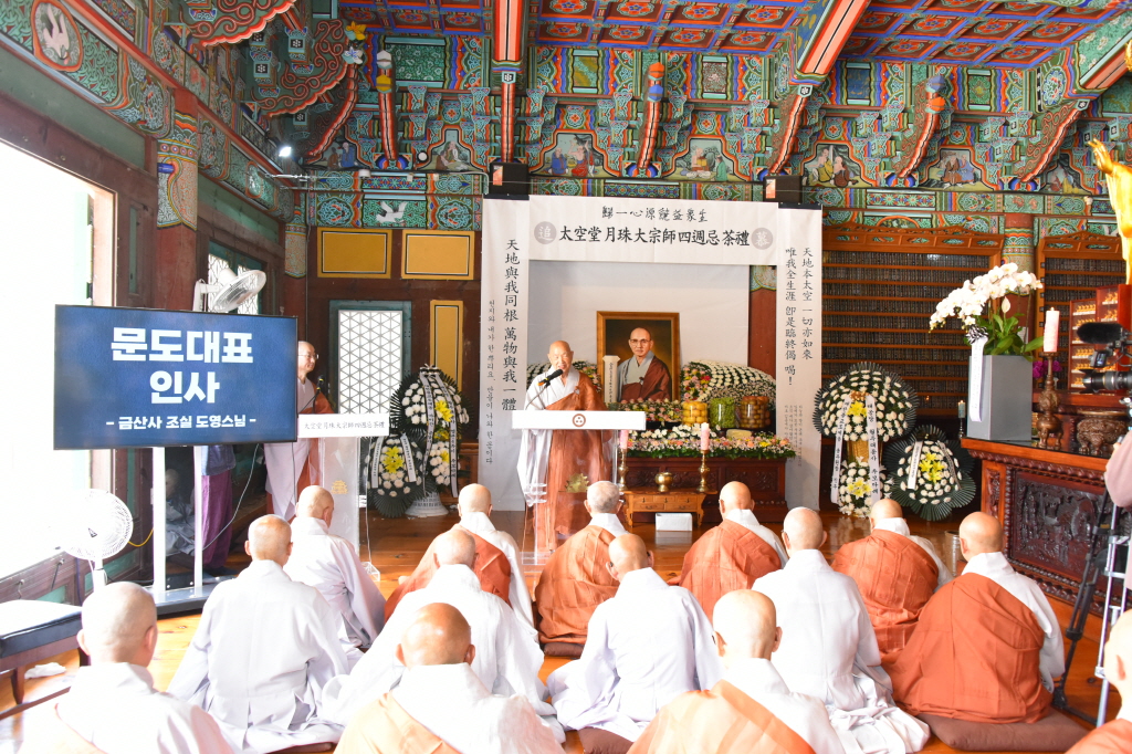 금산사 태공문도회를 대표한 금산사 조실 도영 스님은 추모사에서 “은사 스님의 삶은 자비행과 보살도 실천의 모범이었다”며 “큰스님의 가르침을 이어받아 깨달음의 사회화 운동을 실현해 나갈 것”이라고 말했습니다.