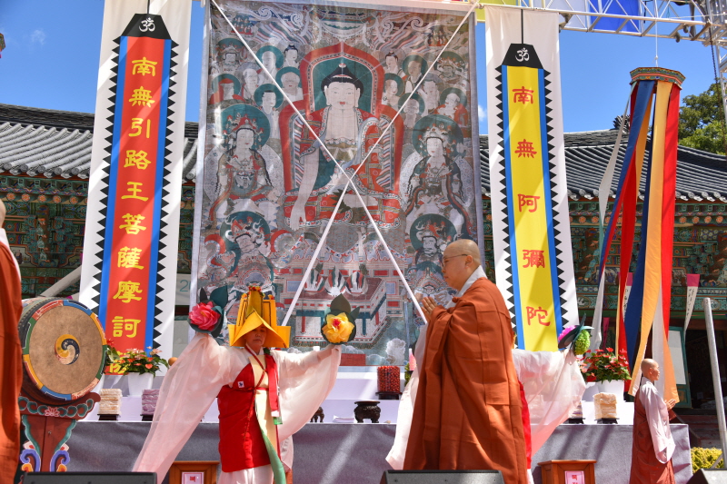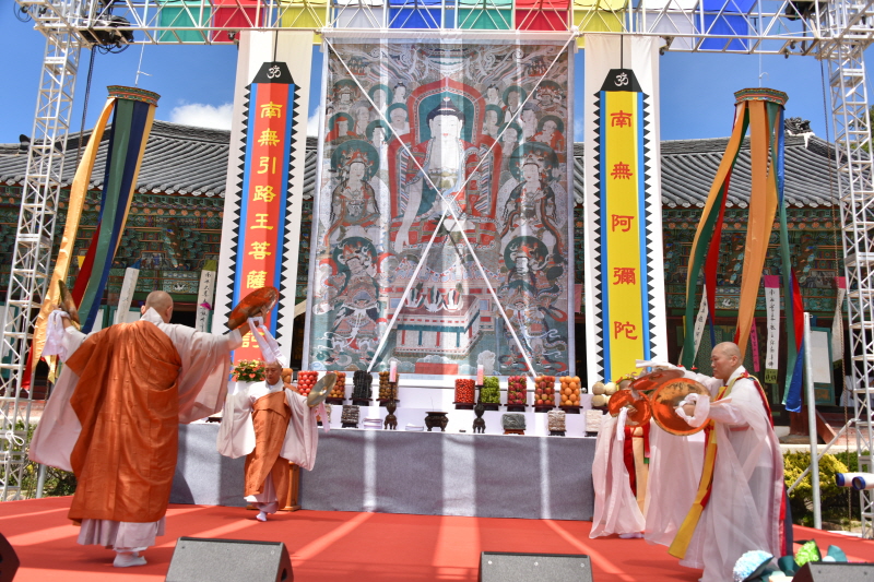 이날 생전예수재는 괘불 점안식에 이어 신중작법, 조전점안(고사단 헌전), 사자단 의식, 상단·중단·하단 불공, 마구단 의식, 봉송회향 순서로 엄숙하게 이어졌다.