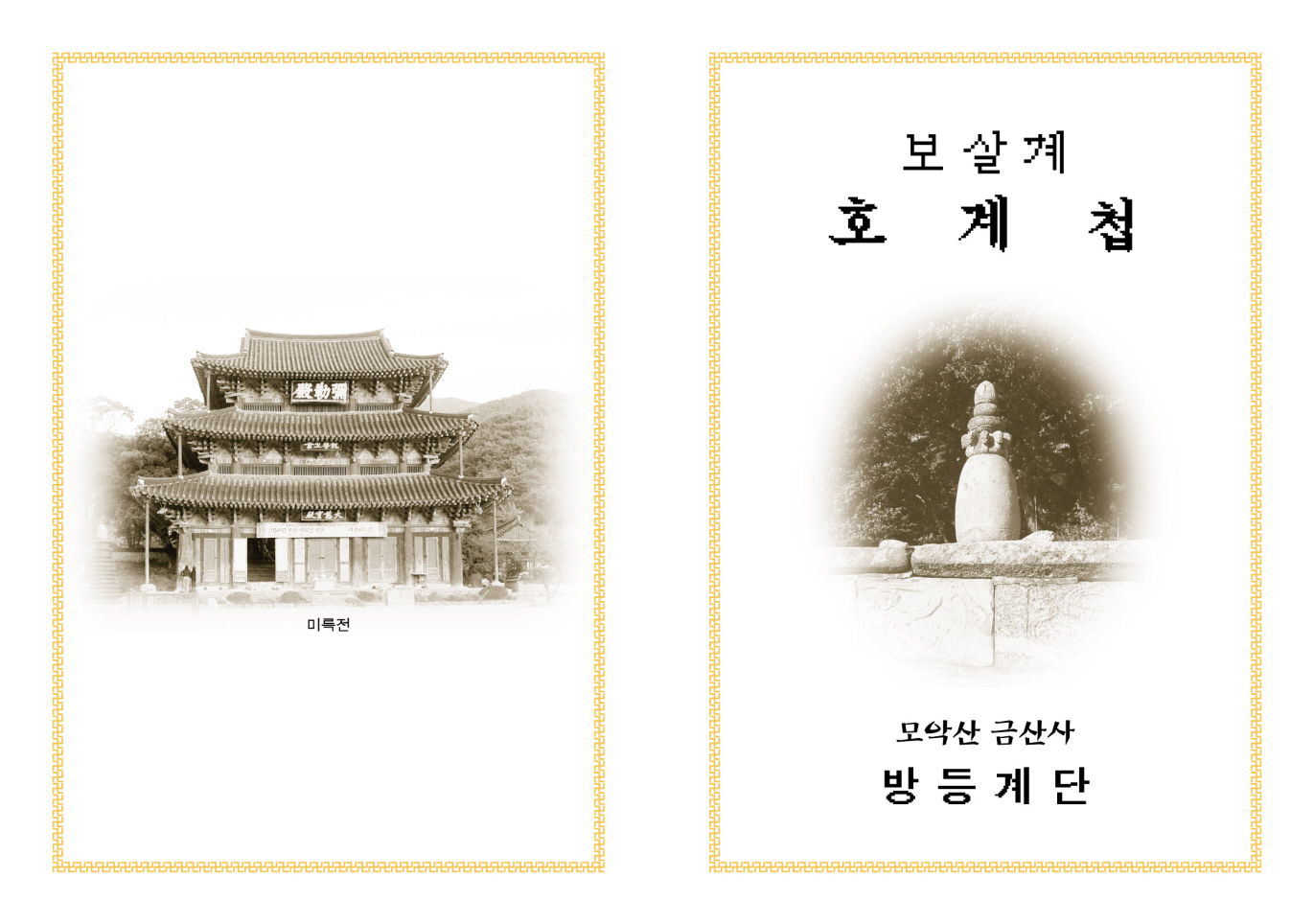 보살계 수계식 모연문 삼보님께 지심정례하옵고, 대한불교조계종 제17교구 금산사 본․말사에서는 이 지역 불자님들과 전국의 불자님들의 신심을 고취하고 대승보살의 원력을 북돋우기 위하여 다음과 같이 합동으로 보살계 수계식을 봉행하고자 하오니 보살계 수계식에 동참하시어 지극한 참회와 서원으로 숙세의 업장을 소멸하시고 이웃들의 이익과 안락을 위하여 열심히 봉사하는 진정한 대승보살의 원력을 구족하시길 바라오며 아래와 같이 법회 안내를 하오니 많은 동참바랍니다. 다 음 개산대재 및 보살계 수계식 ♣일 시 : 불기 2551(2007)년 10월 30일 (음9월 20일) 오전 10시 ♣수계법사 :전계 아사리 태공 월주 대화상 .................갈마 아사리 나가 성타 대화상 .................교수 아사리 죽암 정락 대화상 ♣장 소 : 금산사 방등계단 ♣동 참 금 : 20,000원 ♣보살계 접수문의 : 종무소 063-548-4442. 대적광전:011-678-917 미륵전:011-657-0892 ♣차량운행 : 전주 : 불교회관 (9시출발), 송천동현대3차(8시40분출발) 익산 : 소정형외과(8시 40분), 김제 :부안사거리 (09시10분) 불기 2551(2007)년 10월 30 일 대한불교조계종 제 17교구본사 금산사 주지 원 행 합장