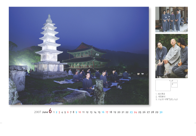 2006년 금산사 템플스테이에서 함께한 도반과의 추억으로 남겨졌던 사진들을 모아 금산사 템플스테이 카렌다를 만들었습니다. 금산사 '걸망'(걸망에 담아온 산사이야기 카페) 가족들의 후원으로 정성스럽게 준비했습니다. 걸망 가족들의 후원이 있었기에 소중한 카렌다 작업을 마칠수 있었읍니다. 후원해 주신 모든 가족들께 진심으로 감사의 마음을 전하며.... 참고로 걸망카페는 금산사 템플스테이를 마치신 법우님들께서 운영하는 곳입니다. 선지식도 만나시고 가족이 되어 마음을 나누시면 좋을것 같습니다. 다시한번 감사드리며... 2007년 금산사 템플스테이에 오시는 새로운 법우님들께 선물 잘 전해 드리겠습니다. 카렌다 사진 구경은 포토갤러리란 참조하세요. (금산사 홈페이지 오른쪽 산사체험란 클릭하세요.)
